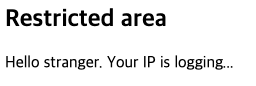 <h2>Restricted area</h2>Hello stranger. Your IP is logging...<!-- if you access admin.php i will kick your ass -->