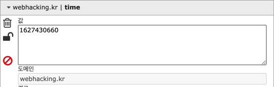 쿠키값을 확인해보니 time에 정수값이 들어있었다.