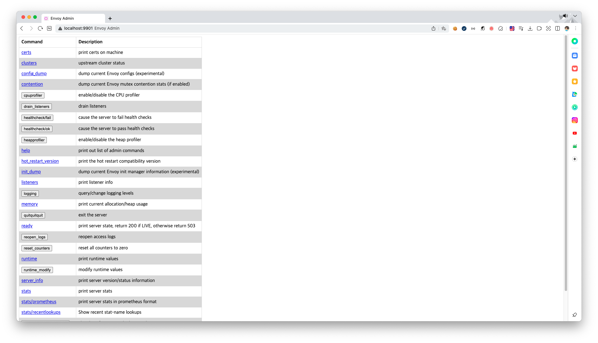 - 어드민 페이지는 요렇게 정의한 9901 포트로 접근해 확인할 수 있다.