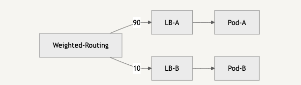 프록시에 묶여있는 서비스들이 이미 가중치 규칙이 적용된 트래픽만 수신하기에, Sticky-Session 과 같은 처리 이전에 전체 트래픽을 대상으로 이미 라우팅이 이루어진다.