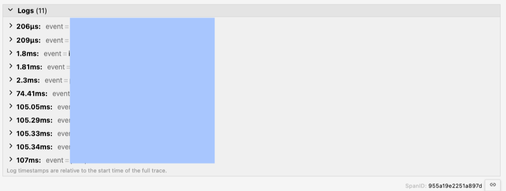 그렇기에, 스팬 자체를 기록하는 것보다 특정 상황에서 이를 이벤트 로그로 기록하는 것을 고려해볼 수 있다.