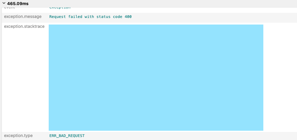 async execute( params: any span?: Span, ) { // ... try { // ... } catch (e) { if (span) { span.recordException(e); } return []; } }단순한 Info 레벨의 이벤트 로그 외에도, 예외 처리 역시 스팬에 기록할 수 있다.