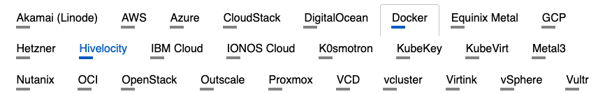# EKS 예시 apiVersion: cluster.x-k8s.io/v1beta1 kind: Cluster metadata: name: cluster-eks spec: clusterNetwork: pods: cidrBlocks: [192.168.0.0/16] infrastructureRef: apiVersion: infrastructure.cluster.x-k8s.io/v1beta2 kind: AWSManagedCluster name: cluster-eks controlPlaneRef: apiVersion: controlplane.cluster.x-k8s.io/v1beta2 kind: AWSManagedControlPlane name: cluster-eks# Docker 클러스터 예시 kind: DockerCluster apiVersion: infrastructure.cluster.x-k8s.io/v1beta1 metadata: name: my-cluster-docker --- kind: Cluster apiVersion: cluster.x-k8s.io/v1beta1 metadata: name: my-cluster spec: infrastructureRef: kind: DockerCluster apiVersion: infrastructure.cluster.x-k8s.io/v1beta1 name: my-cluster-docker이렇게 EKS나 Docker 클러스터의 예시가 보인다.