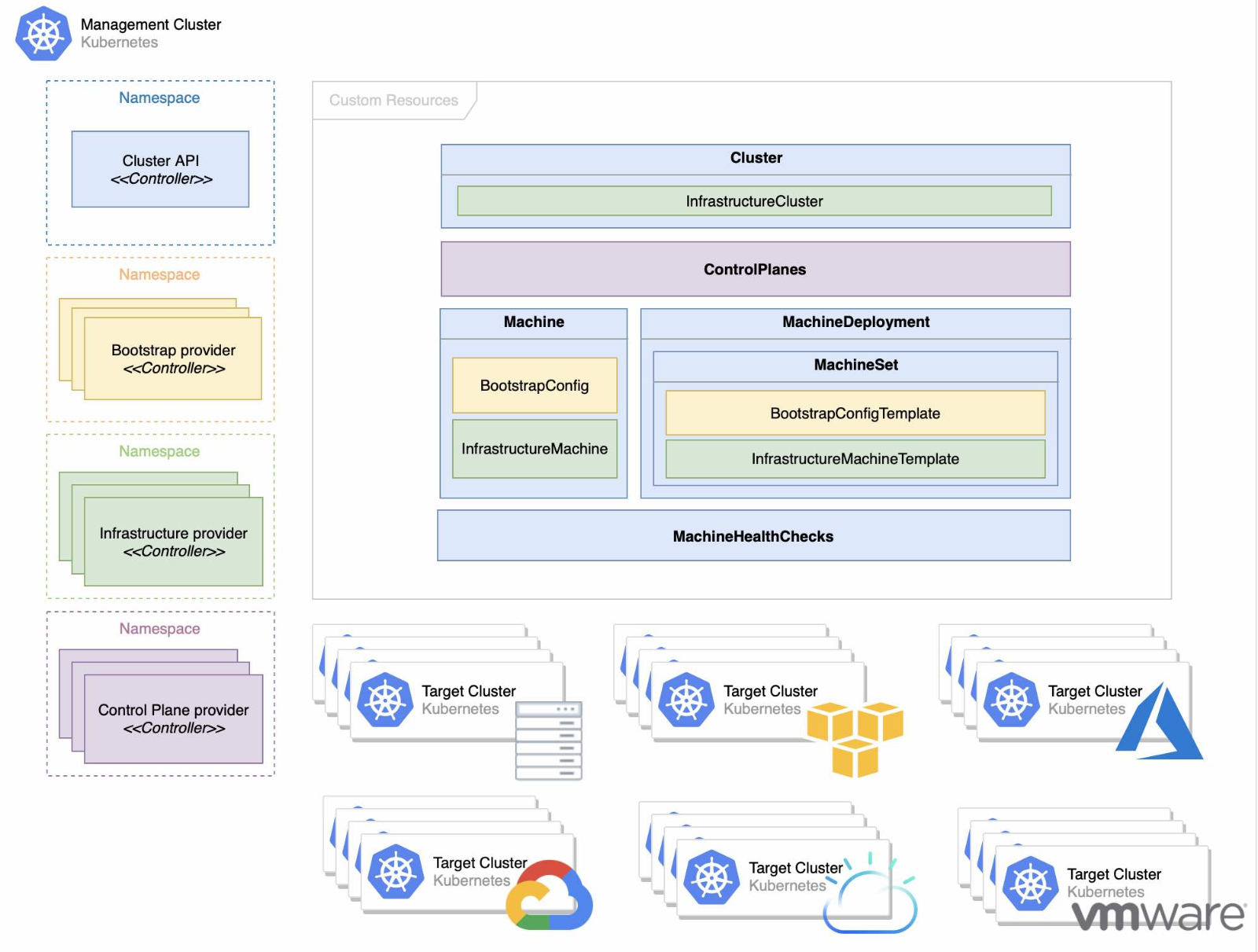 Cluster API has a number of controllers, both in the core Cluster API and the reference providers, which move the state of the cluster toward some defined desired state through the process of controller reconciliation. Documentation for the CAPI controller