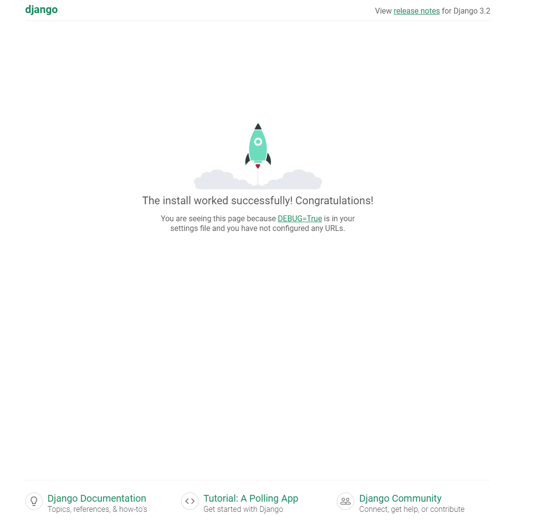 브라우저에서 다음과 같은 화면을 본다면 장고 서버가 실행된 것이다.