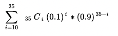Packet Switching에서 35명의 사용자 중 10명 이상이 동시에 해당 네트워크를 사용하는 확률은?