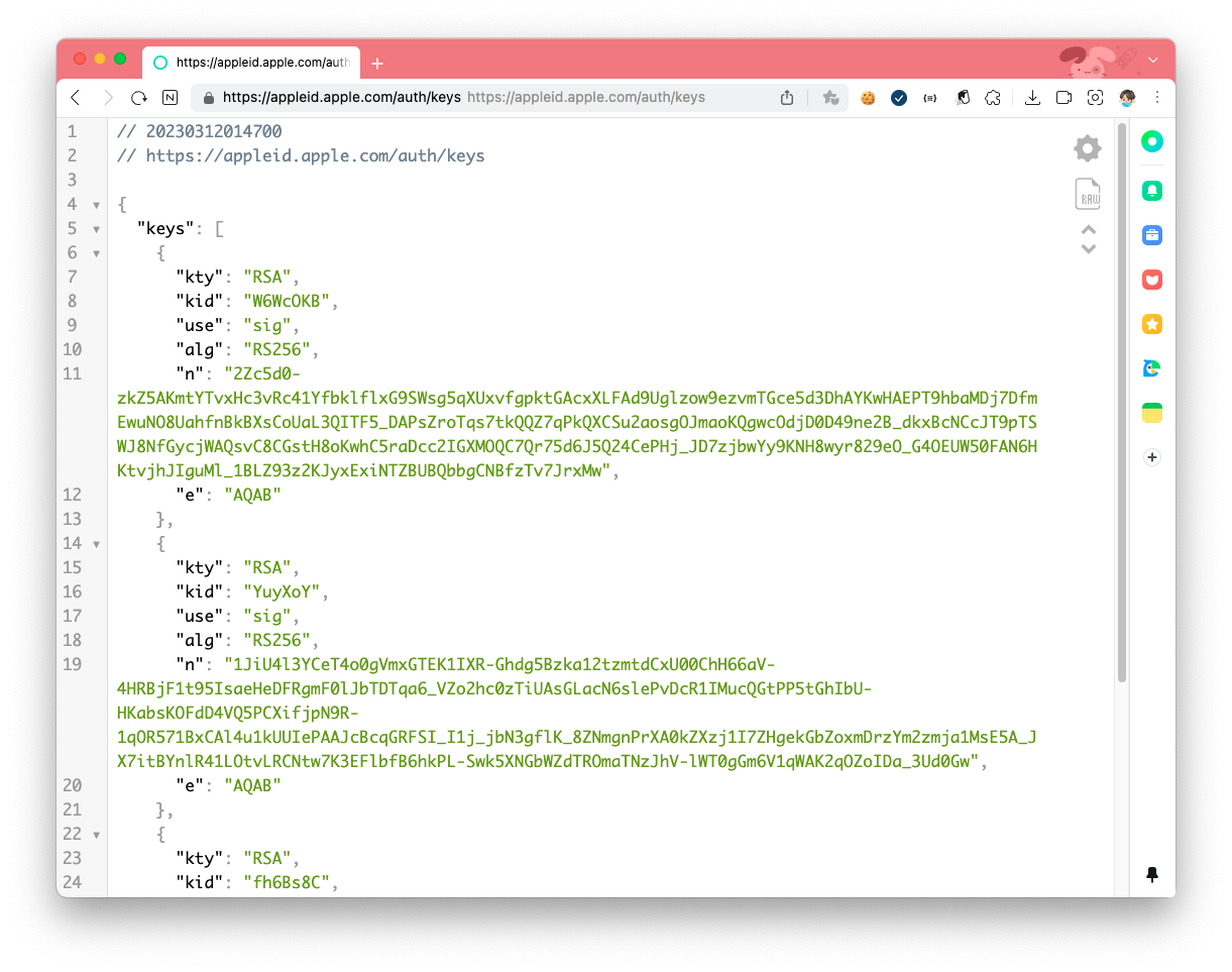 Fetch Apple’s public key for verifying token signature | Apple Developer Documentation