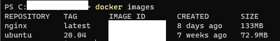 윈도우 파워쉘에 docker images라는 명령어를 실행한 결과다. 나는 이미 이미지를 두개 당겨왔기 때문에 nginx와 ubuntu가 나오지만 아무것도 안나오는게 정상이다. nginx 환경을 구성할 것이기에 아래의 명령어로 nginx를 당겨와보자.